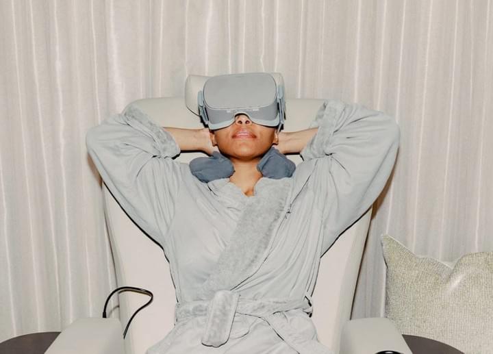 With virtual reality headsets, some clients are now being not just pampered in place but “transported.”